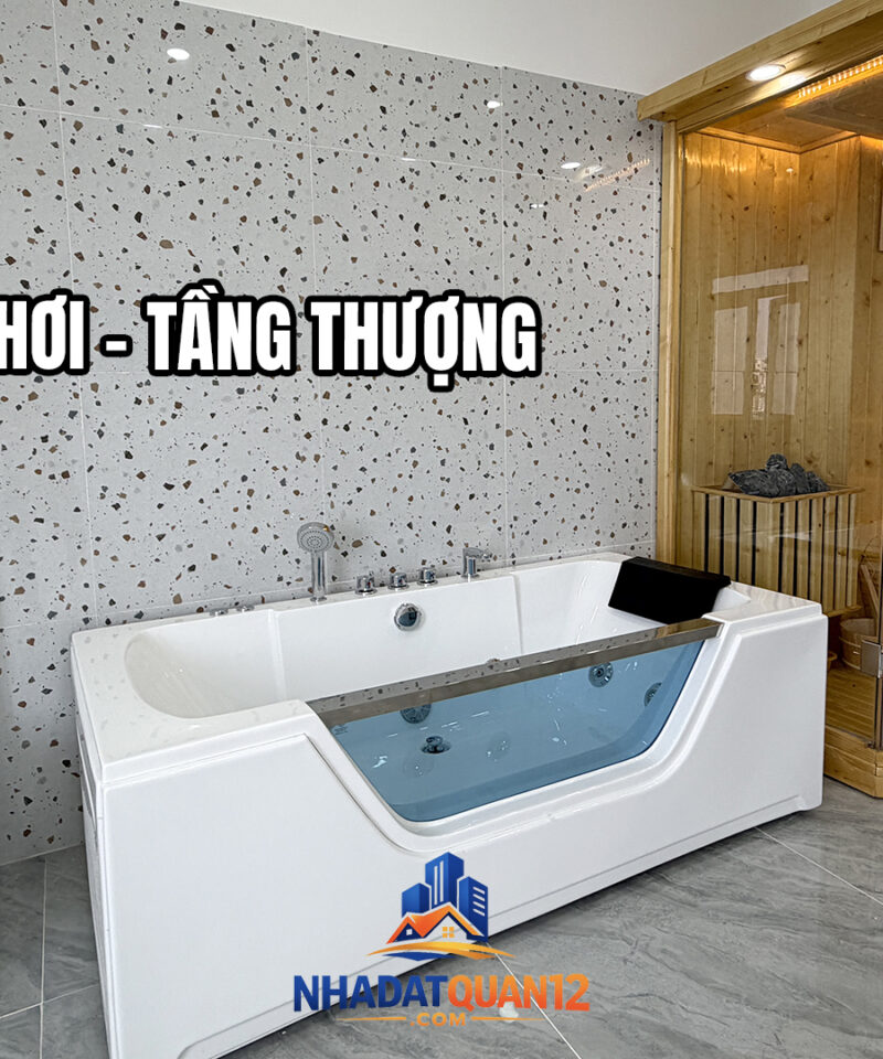 Ngôi nhà được xây dựng kiên cố với kết cấu 1 trệt, 1 lửng và 3 lầu, đặc biệt trang bị thang máy tải trọng lớn – một điểm cộng hiếm có, mang đến sự tiện nghi và đẳng cấp cho gia chủ. Đường nhựa trước nhà rộng rãi khoảng 12m, sạch sẽ, xe hơi di chuyển thoải mái.